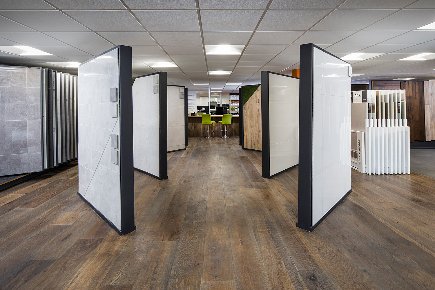 Our modern air conditioned showroom shows the very best in Porcelain Wall and Floor Tiles, Engineered Wood Flooring, Solid Oak Flooring and all the accessories you will need to complete any project large or small.