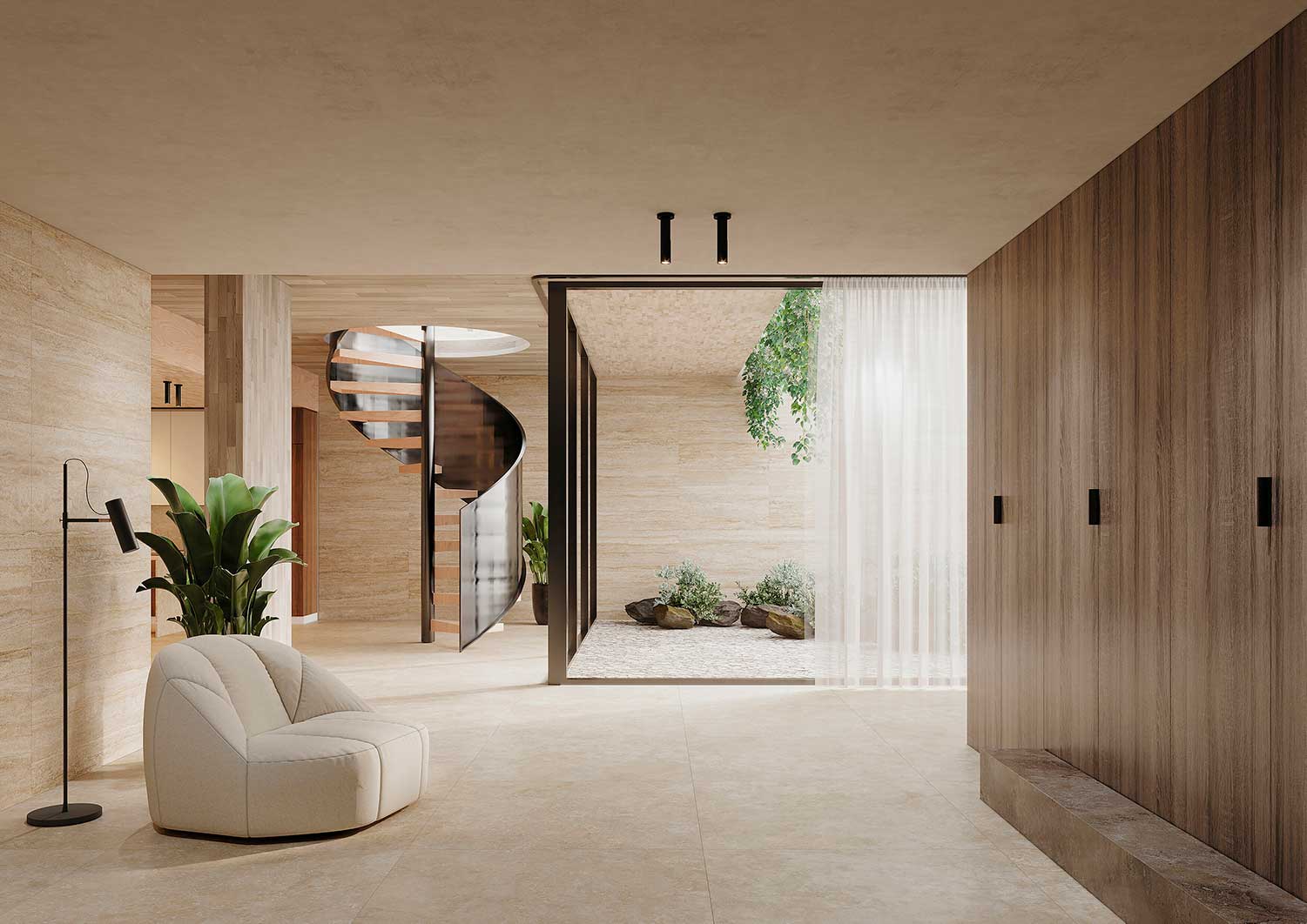 - Bathrooms – Create spa-style bathrooms with soft stone finishes and water-resistant surfaces